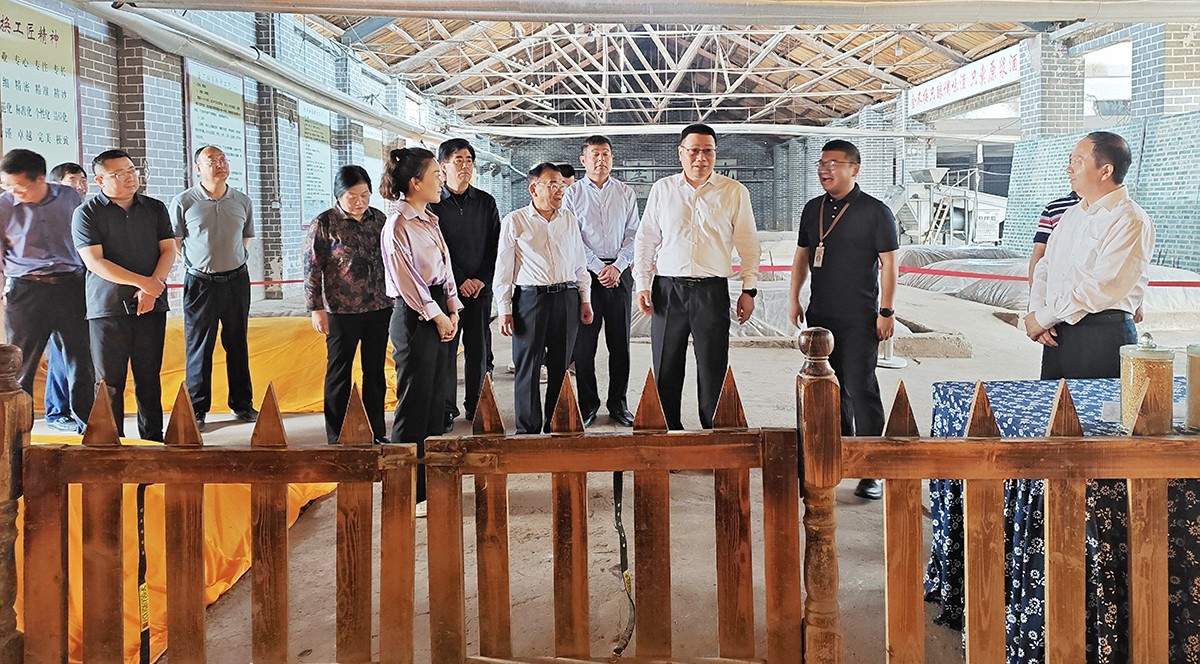 湯涌主席一行查看了金不換文化展示區(qū)、藏酒區(qū)、銷售展廳、明清窖池群和亳酒城市會(huì)客廳。金不換白酒集團(tuán)黨委書記、總裁支濤介紹了近階段企業(yè)生產(chǎn)、經(jīng)營情況和未來發(fā)展規(guī)劃。